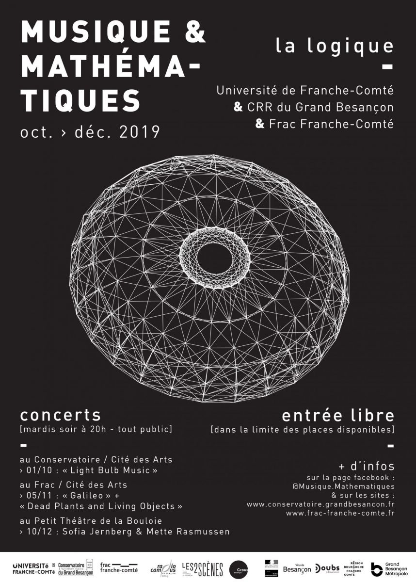 Cette proposition prend la forme d’un cycle de cours (UE libre) à destination des étudiants qui expérimentent autant les mathématiques que la pratique sonore et musicale. 3 concerts-performances sont également programmés autour de la thématique de « la logique » qui est mise à l’honneur en 2019.