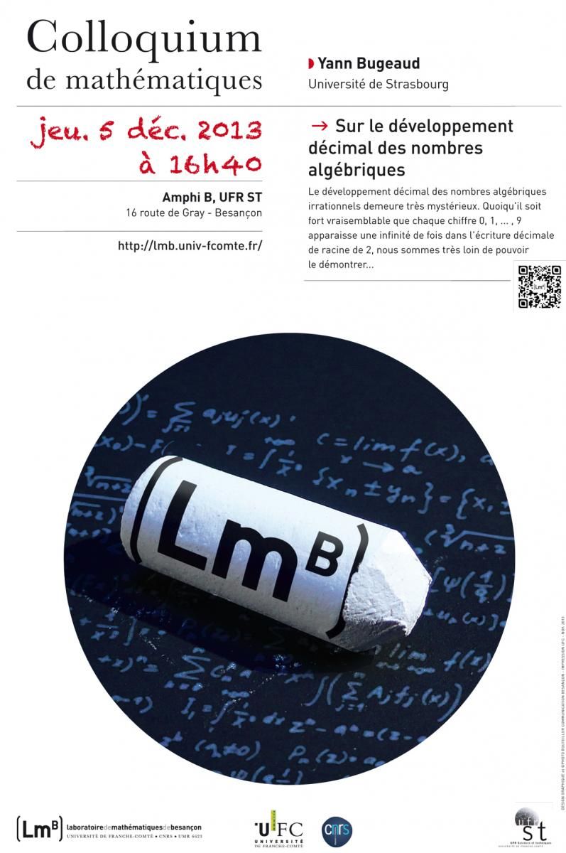Laboratoire de Mathématiques de Besançon organise une conférence sur le développement décimal.