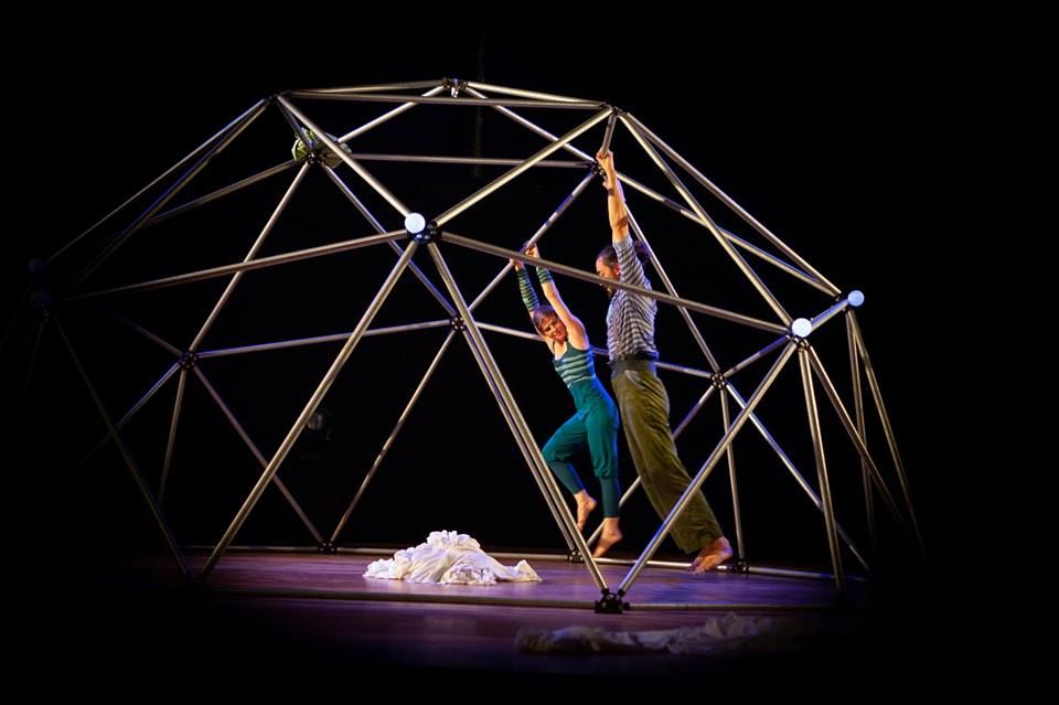 Conte onirique illustré par la danse et l’acrobatie aérienne sur un dôme géodésique.