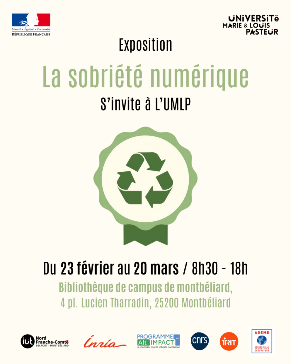 Cette exposition est conçue pour informer, sensibiliser et inspirer, que vous soyez enseignant, chercheur, étudiant ou membre du personnel universitaire. C’est l’occasion de réfléchir ensemble à nos pratiques, d’échanger des idées et de découvrir des solutions pour réduire l’impact du numérique tout en poursuivant nos missions pédagogiques et scientifiques.