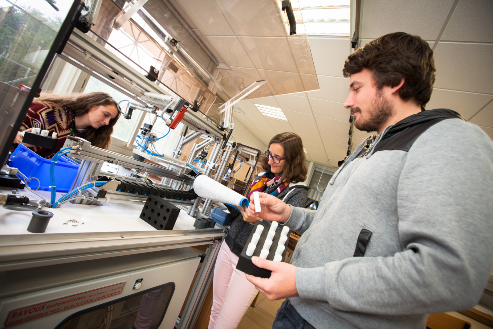 Les systèmes automatisés et robotisés sont couramment utilisés pour la production de nourriture à l’échelle industrielle. À l’UFR Sciences et techniques, le master Systèmes automatisés de production dans les industries agro-alimentaires1, connu sous l’acronyme SAPIAA, forme en alternance de futurs professionnels avec une double compétence en sciences de l’aliment et en sciences pour l’ingénieur. Les contenus des cours se partagent à parts égales entre ces deux domaines. Microbiologie, biochimie, chimie, automatique, robotique, mécanique, matériaux, capteurs, management, gestion de production, qualité… Les étudiants touchent à de nombreuses disciplines. Ce sont des enseignants des écoles d’industrie laitière de la région2 qui se chargent de la partie agroalimentaire, tandis que l'université assure le reste de la formation. Celle-ci est complétée par des interventions de professionnels extérieurs et des visites d'entreprises. « Même si ce diplôme est orienté vers l’insertion professionnelle, avec des contenus pratiques, nous exigeons un certain niveau d’abstraction, du raisonnement, de l’analyse, une dimension modélisation, comme dans tout master scientifique », insistent Dominique Gendreau, responsable du master, et Cécile Berriet, responsable pédagogique.