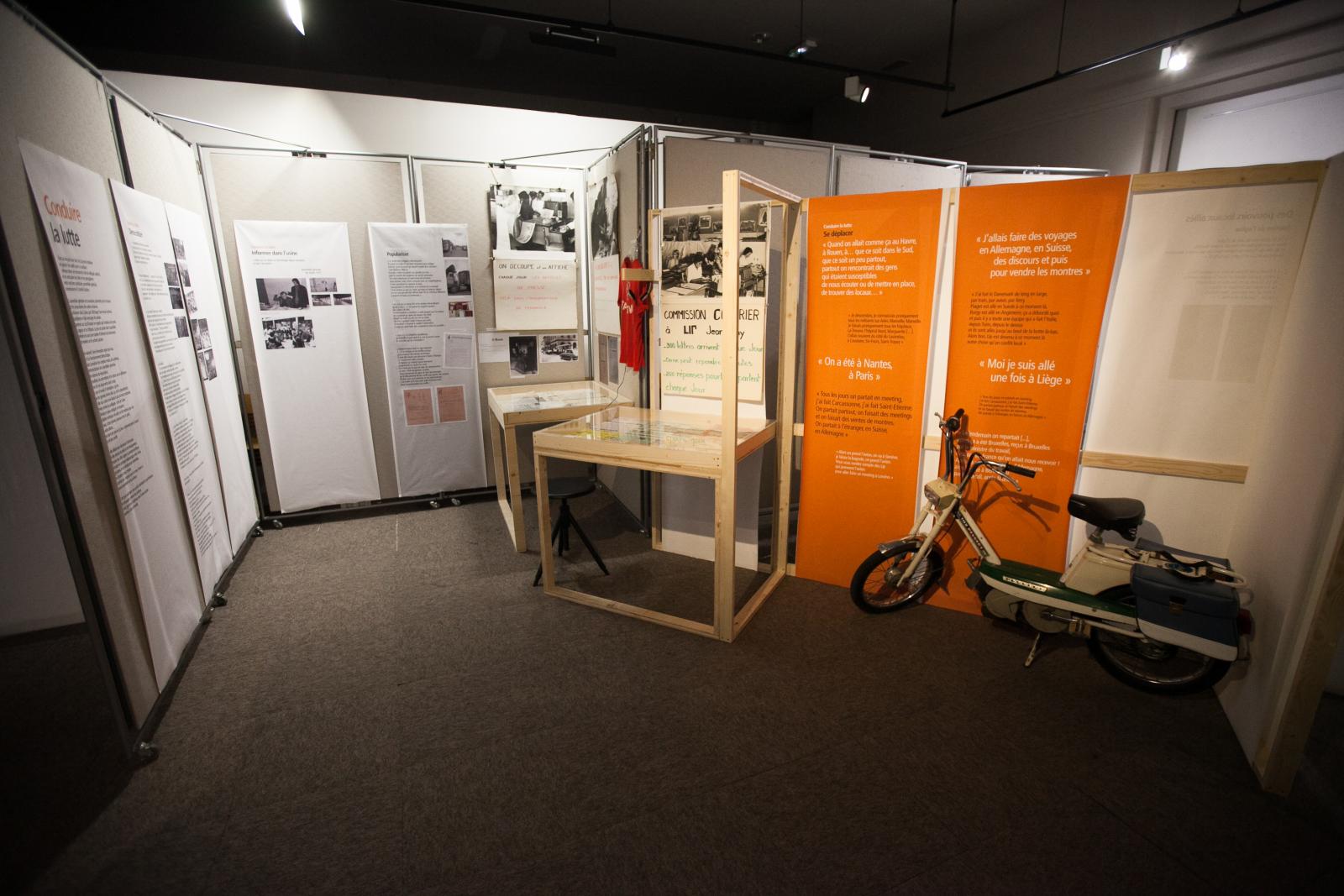 Ce sont les mots et thèmes récurrents dans leurs témoignages qui structurent l’exposition. On retrouve par exemple la notion d’ « espace » : celui de l’usine occupée, devenu lieu de lutte et lieu de vie, puis, après l’évacuation par les CRS, l’installation dans d’autres sites qui inversera le rapport de forces. « Les déplacements », utilisés pour populariser la lutte sont figurés dans la scénographie par une voiture et une mobylette. L’action de « prendre » les montres et celle de « se payer », plus encore que la fabrication ou la vente, revêtent une importance symbolique dans le discours des anciens, tout comme « le collectif » ou la solidarité dont ils parlent encore aujourd’hui avec émotion.